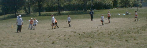 'Uppställning' utropar ena ledaren varvid all ställer sig på led. Indelning i två olika lag har skett tidigare.