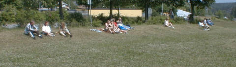Första dagen var det dags för upprop varvid alla var spända och inte kände varandra. Sofie sitter med Seth och Joakim för att bistå denna allvarets stund. Ann fixar och donar.
