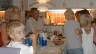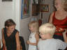 Här ses nästan alla. John struntar i kalaset och kalasar på en sked (kanske finns det kvar lite tårta).