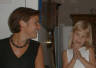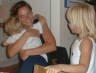 Charlotta i diskusstionstagen med Inger medan Linn avvaktar med en liten present.