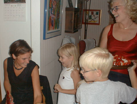 Linn (alltid närvarande vid Charlottas sida) ser med spänd förväntan vad Charlotta skall få....